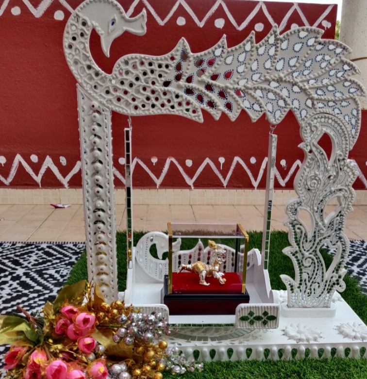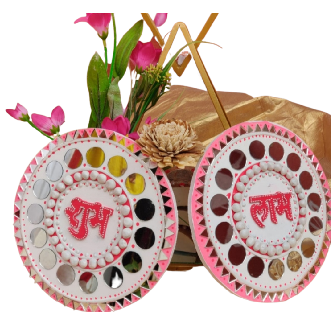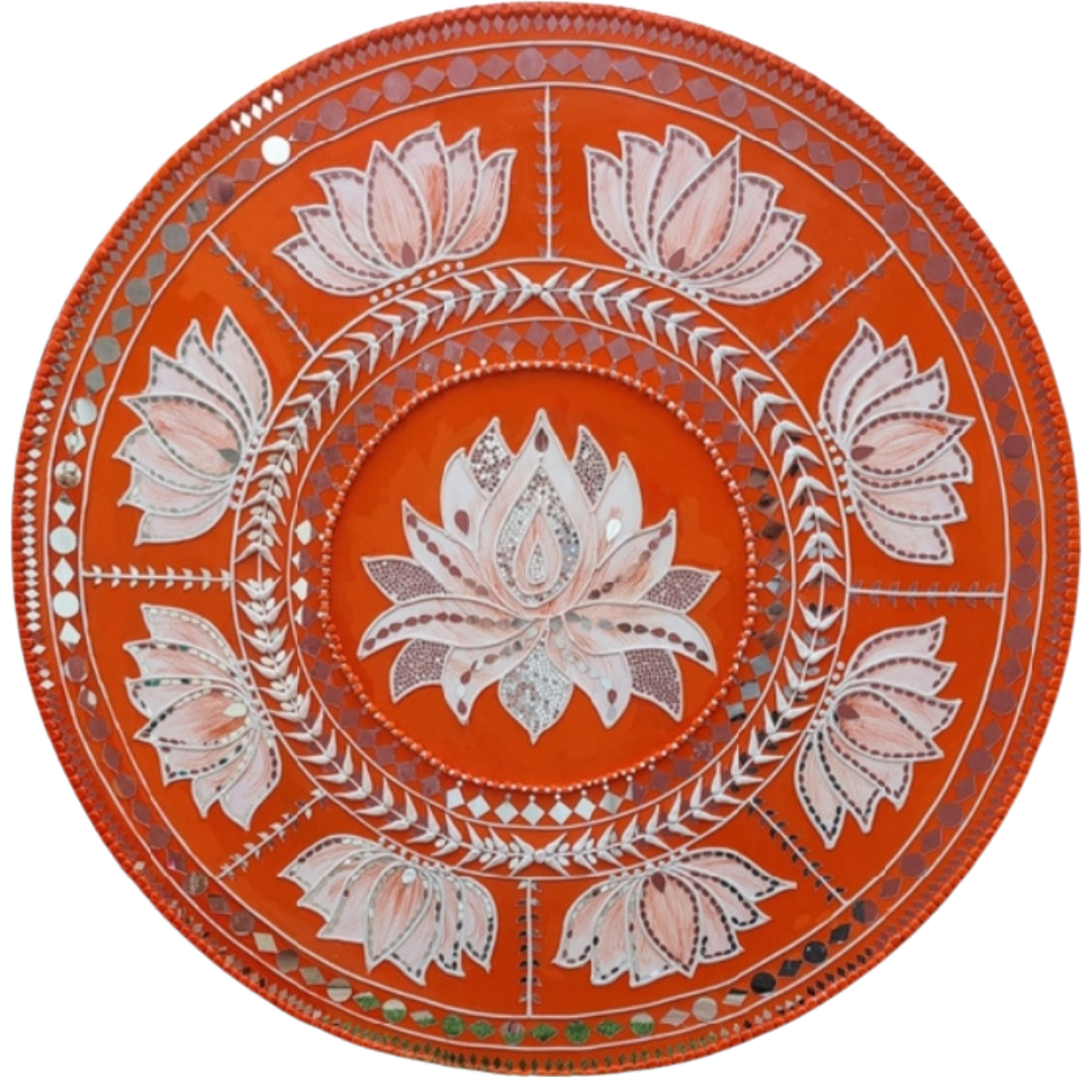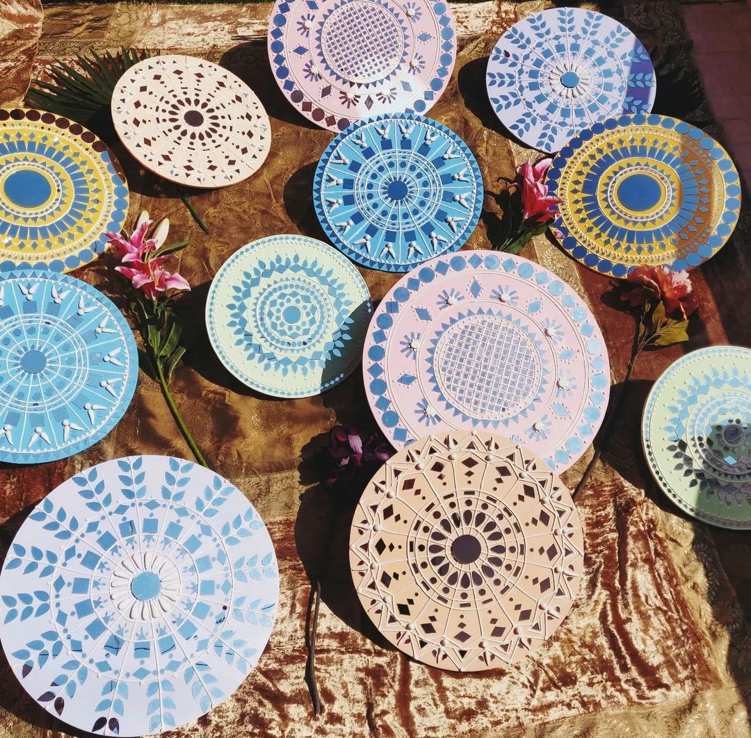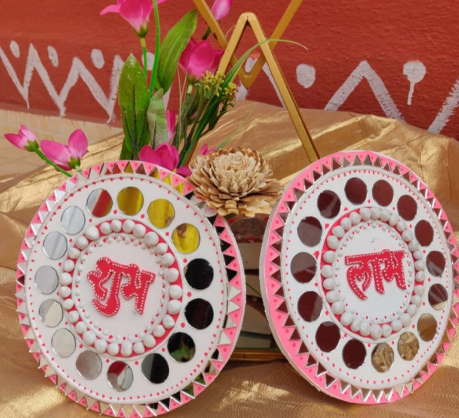 It is handcrafted on desinger wooden pieces using clay, paint and mirrors etc.